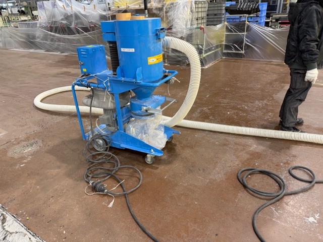 粉塵対策として集塵機を使用しながら、