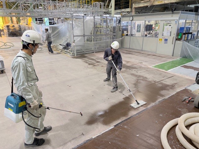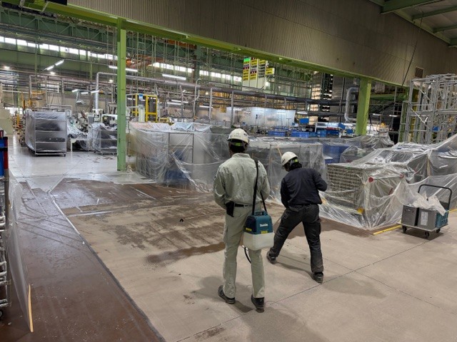 施工に入る前に、周囲の設備や機械を養生し、